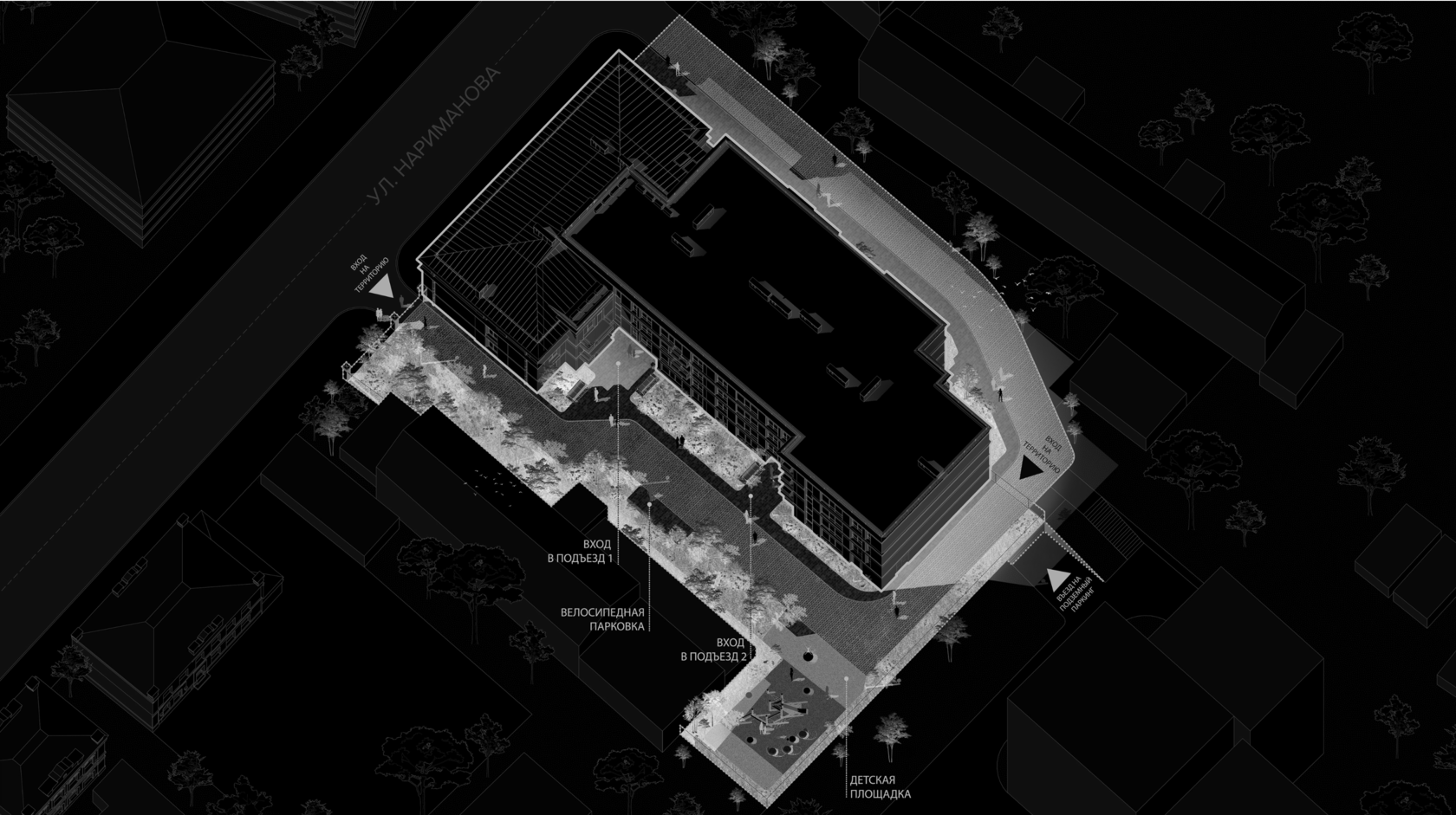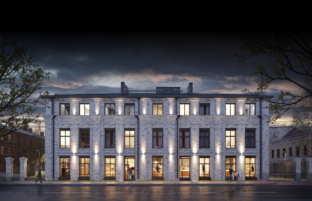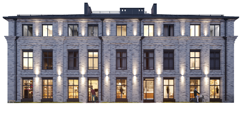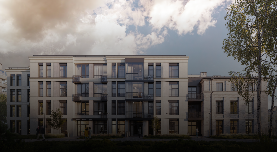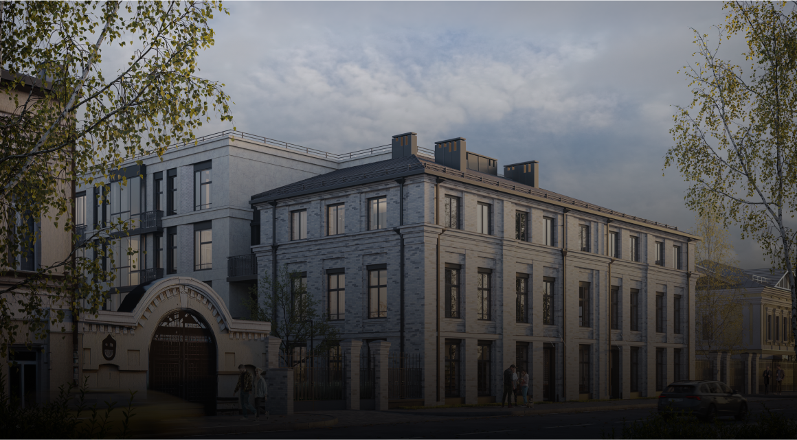 ЖК органично вписываться в силуэт улицы Нариманова. А атмосфера исторической малоэтажной застройки сочетается с высоким уровнем комфорта. Фасад первого корпуса выполнен из керамического кирпича ручной формовки.
